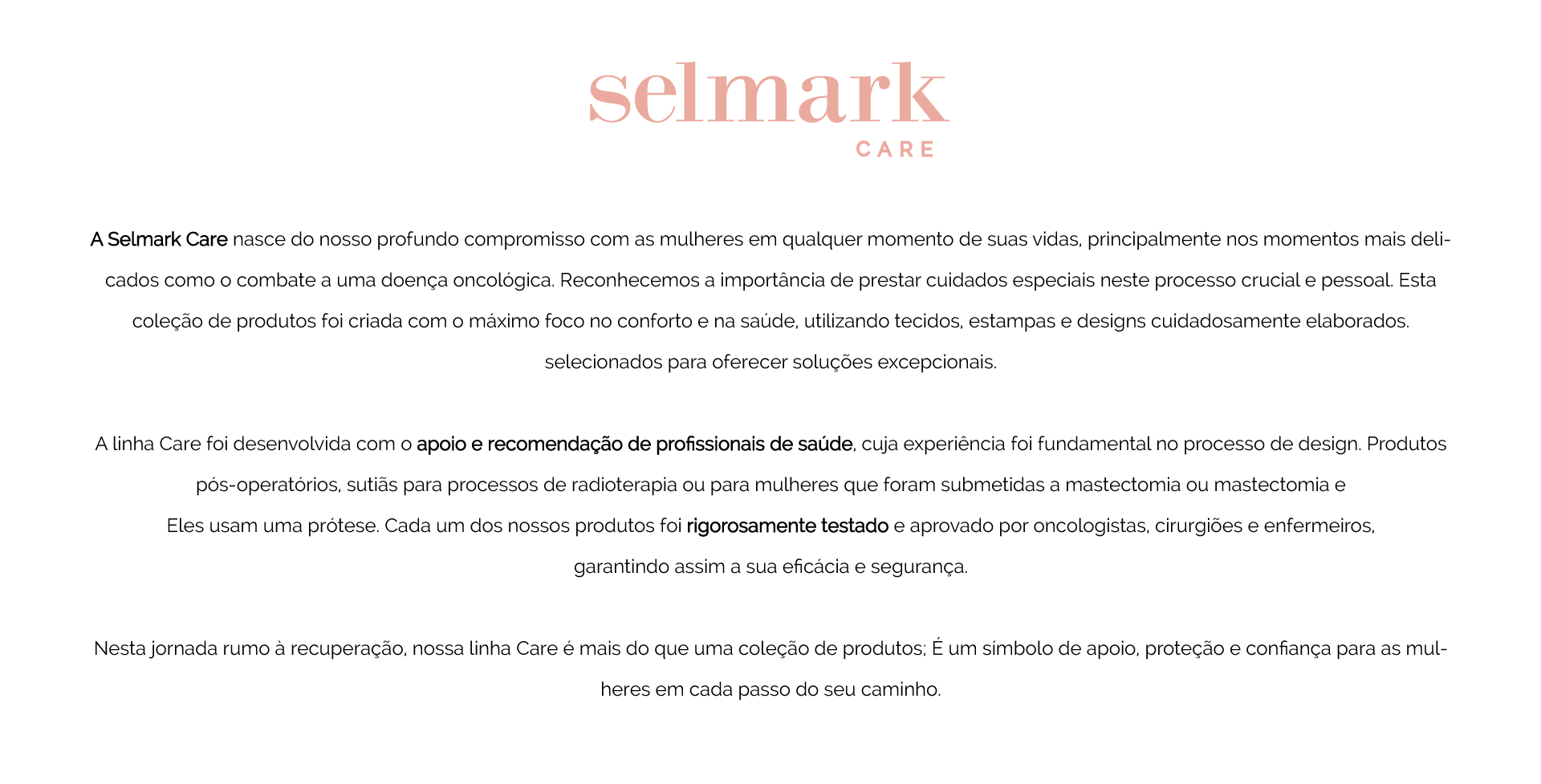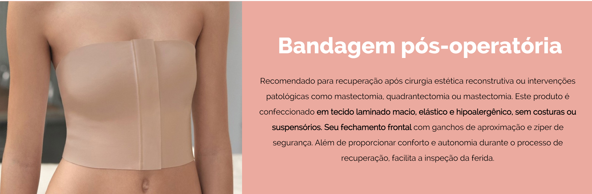 Soutien hipoalergénico de pressão leve. Adequado para pós-operatório, que não necessite próteses e para processos de radioterapia que lesionam de forma agressiva a pele da paciente.